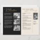 This elegant memorial program design features a refined black and cream colour scheme with modern serif and handwritten script fonts, creating a heartfelt and dignified tribute to a loved one. The layout blends thoughtful typography with space for personalised headings, custom acknowledgements, and black and white photos, making it ideal for a celebration of life or funeral service. Subtle gold accents add a touch of sophistication, while the structured format allows for an organised presentation of eulogies, readings, and memorial activities. This fully editable template offers a beautiful way to honour a life well-lived, combining timeless style with meaningful personalisation for an unforgettable remembrance.