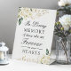 In Loving Memory Elegant Green White Rose Floral Pedestal Sign