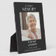 Personalised funeral memorial black photo plaque featuring a large picture of your loved one, the text in loving memory of , their name, birth/death dates, and the remembrance saying we will always carry you in our hearts. on the back there is the photo and text saying fly high grandma. a special keepsake to treasure forever.