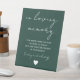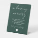 In Loving Memory Elegant Script Emerald Green Pedestal Sign