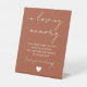 This terracotta minimalist elegant script 'on loving memory' sign can be personalised with your information in chic typography. Designed by Thisisnotme©