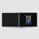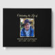 Elegant sympathy & memorial CELEBRATING THE LIFE OF guest signature book. Easy to add photo / picture of your loved one. Faux gold frame with brush stroke on a black background. For funeral parlour guest attendance. Acknowledgement of condolences. Makes great keepsake, memory of a loved one. guests can add their names, and messages. See others like 'in loving memory'