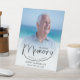 Modern memorial funeral pedestal sign features the wording "In Loving Memory and forever in our hearts" in chic lettering with your loved one's photo, name & dates. MATCHING items in our collection.