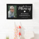 Memorial funeral banner featuring a stylish black background that can be changed to any colour, a photo of your lost loved one, and a "in loving memory" template that is easy to personalise.