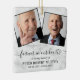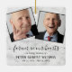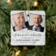 Memorial tribute christmas ornament featuring a elegant marble pattern background, 2 photos of the person who has sadly passed away, the sympathy saying "forever in our hearts", their name, and birth/death dates.