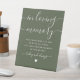 This olive green elegant script minimalist "in loving memory" sign is perfect for all events. Designed by Thisisnotme©