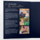 This refined funeral program design showcases a modern and heartfelt aesthetic with a deep navy blue background and elegant gold script accents. The layout thoughtfully blends serif and handwritten script fonts to create a respectful and warm tone, ideal for honouring a loved one's memory. Full colour photo collages provide space for personal snapshots, while custom sections for an obituary, order of service, poem or quote, acknowledgements, or any other text, offer a meaningful way to celebrate a life well lived. The rich, classic colour scheme and clean design elements make this template a beautiful and timeless keepsake for family and friends attending the memorial.