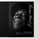 This stylish modern "in loving memory" celebration of life, or funeral or memorial service program offers an elegant way to honour the life of a loved one. With a sleek black background and white script, the program is both modern and timeless, creating a dignified atmosphere for a celebration of life. The front cover features a photo of your loved one, accompanied by the words "In Loving Memory" in an elegant script. Below, your loved one's name, and birth and passing dates, and the location of the event are clearly displayed, offering a respectful and heartfelt tribute. The remaining panels of the program feature the order of service, obituary, a photo collage, a reading (poem, prayer, religious verse or quote), and acknowledgements. This layout creates a balanced mix of personal reflection and structured guidance for the service, helping to celebrate a life well-lived in a meaningful way. This memorial program serves as a beautiful keepsake for family and friends, offering comfort and remembrance after the death of a loved one.