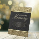 Elegant, simple glitter gold and black wedding memorial table pedestal sign with modern calligraphy script.