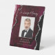 In Loving Memory Photo Burgundy Silver Agate Pedestal Sign