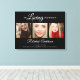 The remembrance keepsake canvas features 3 photos of your loved one, the sympathy saying 'IN LOVING MEMORY' their name, dates and a personal message. The font styles, size, color and background color can be changed by clicking on the customize further link under personalize this template.
