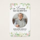 A beautiful floral photo funeral card to honour a beloved loved one. The elegant design features a lovely floral background with a photo frame. This card is perfect for celebrating a life well-lived.