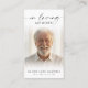 Keep the memory of a loved one close with this custom personalized prayer card featuring one cherished photo, the sentiment IN LOVING MEMORY, name and dates and an editable heartfelt remembrance message. With its simple yet elegant black and white design and modern script typography, it makes a meaningful keepsake to share at a funeral memorial service of Celebration of Life event and offers family and friends to carry it with them as a reminder of your loved one’s life and spirit. Personalization makes each card unique.