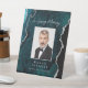 In Loving Memory Photo Teal Silver Agate Wedding Pedestal Sign