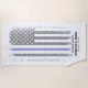 Simple and stylish, this design is the perfect way to honour a fallen officer who dedicated their time to serve and protect the community. The design features a grunge American flag with a single blue thin line (stripe). All text is customisable to fit your "In Loving Memory" needs for the fallen officer. Thank you to all officers who to uphold their sworn oath to protect and defend the Constitution of the Republic of the United States of America.