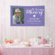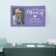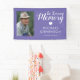 Memorial funeral banner featuring a purple background that can be changed to any color, a photo of your lost loved one, and a "in loving memory" template that is easy to personalize.