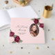 Easily personalise this beautiful floral in loving memory/funeral guest book featuring a photo adorned with burgundy red and pink roses and baby's breath flowers on a blush background.