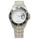 Has heft and feel of expensive stainless steel quartz watches. Good band with safety catch. I removed links, which is easy because engraved arrows show direction to push the linking pins. As always by this seller, the image (a railroad logo) is a perfect reproduction of my emailed image, and is precisely spaced and aligned.