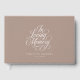 Elegant, Minimalist, Script Font "In Loving Memory" celebration of light-brown, white, funeral guest book, elegant, lovely handwriting font.