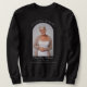 Personalised funeral memorial black sweatshirt featuring a large picture of your loved one, the text in loving memory of , their name, birth/death dates, and the remembrance saying we will always carry you in our hearts.