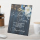 An elegant design with elegant calligraphy completed by wonderful blue wood, garden string lights and white blue floral with gold glitter. You can personalise this with your message.