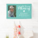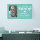 Memorial funeral banner featuring a teal background that can be changed to any colour, a photo of your lost loved one, and a "in loving memory" template that is easy to personalise.