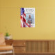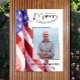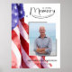 A funeral memorial poster features a watercolor United States Flag with your loved one's photo, name, birth-death dates and "In Loving Memory and Forever in our Hearts" at the top. MATCHING items in our collection.