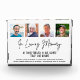 In loving memory wedding memorial acrylic block with a 4 photo collage in colour (a black and white option is available in the shop) and space to add their names or any custom message. The example reads "of those forever in our hearts today and always". White simple calligraphy design for the reception or ceremony.