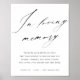 In Loving Memory Sign - a simple and chic sign to be placed at your wedding reception memorial table or display honoring loved ones who have passed. Personalize with names of your deceased loved ones if desired.