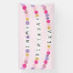 Part of the Friendship Bracelet theme party collection. Personalize this invitation with your own lettering on the beads or leave it as is.