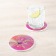 A brilliant fractal flow of pale yellow and orange turning to hot pink, overlaid with gold sun-motif filigree studded with jewels and accented with a smooth deep pink gem surrounded by glowing golden sun rays.