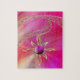 A brilliant fractal flow of pale yellow and orange turning to hot pink, overlaid with gold sun-motif filigree studded with jewels and accented with a smooth deep pink gem surrounded by glowing golden sun rays.