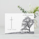 This memorial card has a dark modern and elegant design with a white border around the front and back. In silent mourning - tree on a meadow.