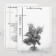 This memorial card has a dark modern and elegant design with a white border around the front and back. In silent mourning - tree on a meadow.