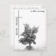 This memorial card has a dark modern and elegant design with a white border around the front and back. In silent mourning - tree on a meadow.