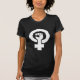 Universal Female symbol combined with Solidarity Hand in black text on white tshirt