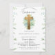 In Spanish, Boy or Girl Greenery Blue Confirmation Invitation