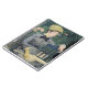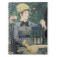 In the Conservatory. Edouard Manet .Group portrait in green tones. A woman is sitting on a bench in the park with an umbrella in her hands and a cute hat. There is a man with a beard standing behind the bench. Reproduction of famous works of art images in the public domain.