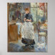 In the Dining Room (1886) by Berthe Morisot beautifully captures the everyday domestic scene of a woman in the intimacy of a dining room setting. Morisot’s signature Impressionist style is evident in the soft brushstrokes, capturing the delicate interplay of light and shadow across the room. The painting portrays a moment of quiet elegance, showcasing the simplicity and beauty of interior life. Morisot's ability to create a sense of warmth and comfort is evident, as she delicately conveys the subject's graceful presence amidst a cosy, yet refined environment.