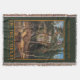 A quality printed throw has its advantages. This is a much finer weave throw than its loopier cousins, and though lighter, it is worth the investment for custom room accessorizing. The back is much prettier than the typical brown, and the fringe on the long sides very vivid, the selvage nicely done. Before photographing, I washed the throw in cold water, delicate, with a thicker woven throw the same size. On tumble dry low, this throw was dry in half the time as the other. This is a very practical quality if you use throws for furniture covers or to wrap up in frequently. The sleekness of the fabric makes it a great layer for accenting or protecting without the feeling of sitting on too much stuff. Perfect for napping or when you feel a light chill coming on. The color printing is beautiful and on this fabric, matched the design and color of my Photoshop image. This is an advantage for blending room fabrics and colors. The fringe on the short sides prints the colors from the design image and therefore varies from the side fringe. I streaked a white fractal line through the plaid pattern to give the illusion of weaving. This printed as crisp as an illusory thread, and put some white in the short side fringe, showing another advantage of print vs loomed- for artistic purposes, line lines, detail, and color integrity can be planned and preserved. My loomed throws have color limitations and more of a needlepoint texture. Print throws reproduce an exact image. The throw felt a little stiff straight out of the package, but this went away in the first delicate wash. Of course I searched the wash water for ink or bleeding and there was none.