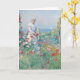In the Garden (Celia Thaxter in Her Garden) (1892) | Original artwork by American Impressionist painter Childe Hassam (1859-1935). The piece depicts a woman standing in a beautiful lush green garden with pink and red flowers.