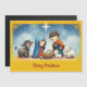 Charming nativity manger scene with Mary and Joseph gazing at the Baby Jesus, on a thin magnetic card. The childlike watercolor design is sure to please. Decorate the fridge, metal cabinet, etc. for Christmas--keep recipes and lists in easy sight. Slip one into a Christmas card as a little extra gift, or use as a stocking stuffer.