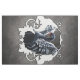 In the shadow of elegance: A black swan. A majestic black swan, its outstretched wings displayed in full splendour, with a harmonious colour gradient from deep black to soft grey tones underlining the swan's elegance and grace. The swan's long neck is gracefully curved, giving the composition a dynamic movement. Its red beak forms a striking contrast to the dark tones of the body.