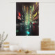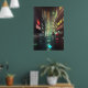 In the street at nighttime, you can see cars in the street and skyscraper in the background . This is a AI generated art piece