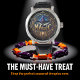 This round watch features a captivating design with a vibrant purple witch's hat at its centre, glowing with magical light. Ornate gold swirling patterns and twinkling stars frame the words "IN THIS HOUSE WE BELIEVE IN MAGIC," along with a sparkling magic wand. This enchanting watch is perfect for fantasy lovers.