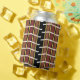 Inception foam can coolers. Inception is an abstact design created by Vexenwraith and consists of red and orange blocks with white and yellow lines running vertically and horizontally on a black background.