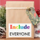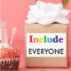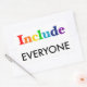 A sticker that reads ”Include EVERYONE” with the word “Include” being in the colours of the rainbow.