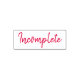 Easily personalise these custom Incomplete Scrapbooking self-inking rubber stamps with your own names and address. To customise these rubber stamps, click on "Personalise this template" and change the text in the boxes provided. Available in 9 different colours and 6 sizes. Please view your design on the monitor as close to actual size as possible to ensure that the text prints at the expected size. For use as a return address stamp most people will require a larger size than this. These return address self-inking rubber stamps stamp up to 10000 impressions with each cartridge, have a soft touch for secure grip and ink-free fingers and an eco-friendly manufacturing process. No minimum order quantity.