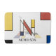 Nice, funny, artistic monogram. Here is the letter "N". Neoplasticism style, or De Stijl, line and color artistic decoration, the funny bird sits on the letter. The field of art is located under the letter. The template name "NICHOLSON" is located under the image. An elegant and unique bath mat for your bathroom. This design is fully customizable. You can change or delete the template name, and you can change the image. If you wish to change fonts, colors, sizes or the whole composition of the design feel free to use the "Edit Design" or "Personalize" (as the case may be) button of the blue color to further customize it. You will be transferred to the "Design Tool" where you can find fonts, colors, sizes on the right menu; layers, images, geometric elements, backgrounds on the left menu. Just be creative, customize, buy one, enjoy the party, and be happy!