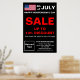 Happy Independence Day! Holiday to celebrate and feel freedom. It is also one of the holidays of the year to advertise your business. Customisable poster with Independence Day Sale, your business name and other information. Poster that you can use as marketing material to attract more customers. Customise it and use it to convince more customers to buy your products or clients to like your services this Independence Day. Design colours and shape are red and white texts on black background and portrait format rectangle shape. Contents are flag, 4th of July, Happy Independence Day, sale, percent discount that you will offer, sale dates, your business name, logo, address, phone number, e-mail and website or your social media page. Please check the appearance after uploading logo and typing texts. If the appearance is pleasing to you, you can place your order now. If you need to resize and move the logo and texts to fit on this poster or on other appropriate size, shape and style that you will choose, please change in the design tool. You can also make other changes in the design tool according to the appearance of this poster that you prefer such as changing the background colour, font colour and font style. Happy Independence Day! Feel the freedom! Wishing you more sales this holiday.